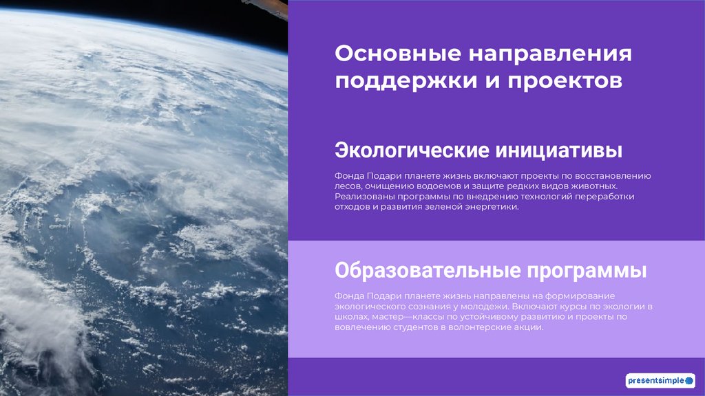 Фонда Подари планете жизнь включают проекты по восстановлению