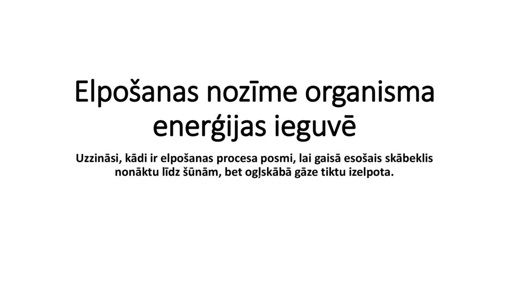 1. Elpošanas nozīme organisma enerģijas ieguvē