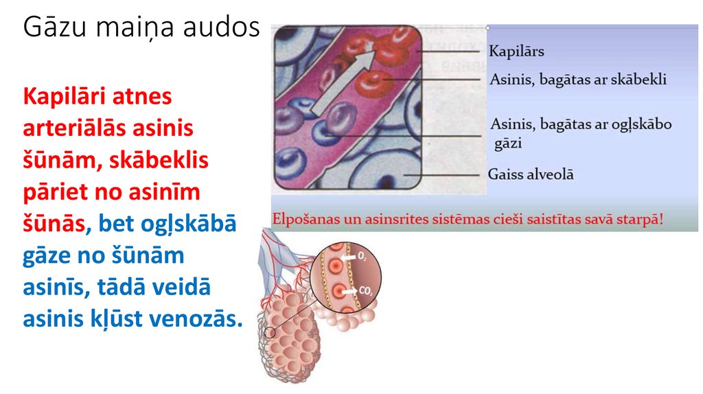 • ... no alveolām nokļūst asiņu eritrocītos, bet ogļskābā gāze no