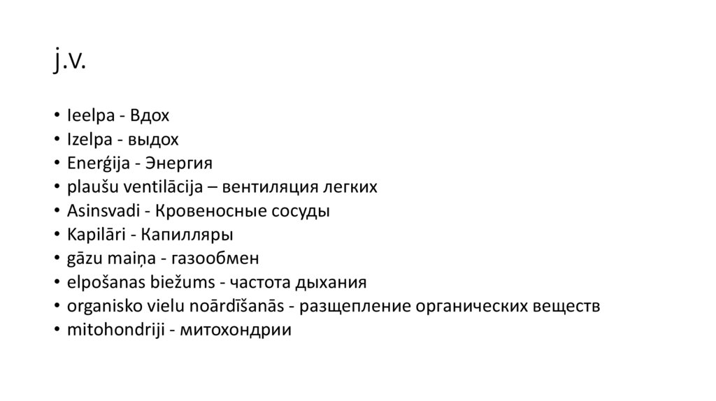 • organisko vielu noārdīšanās - разщепление органических веществ