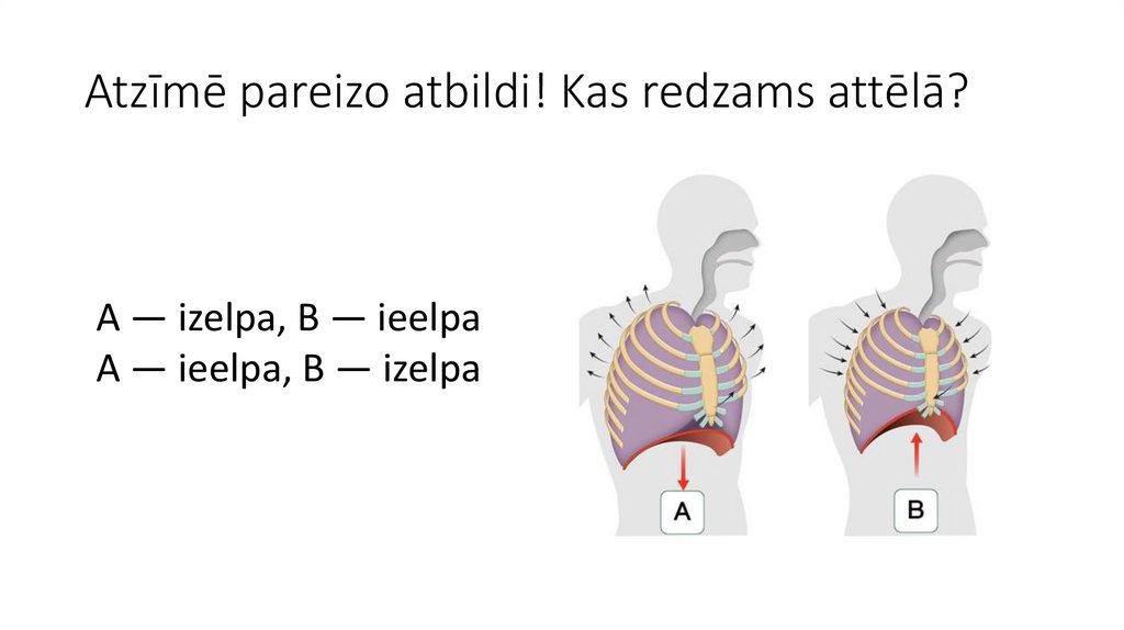A — izelpa, B — ieelpaA — ieelpa, B — izelpa