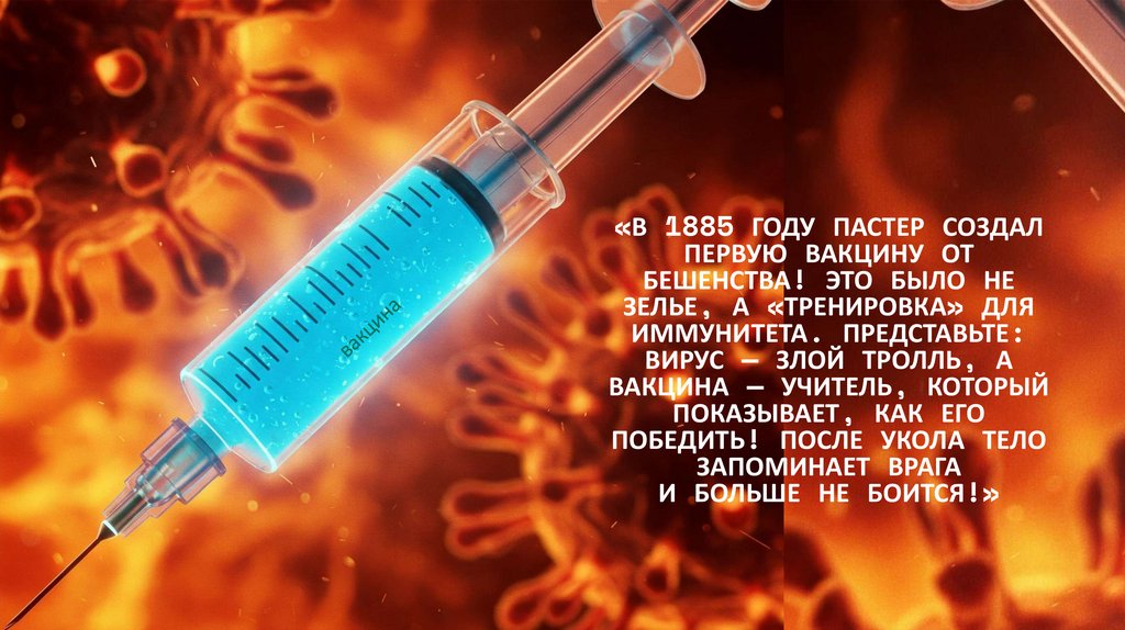 «В 1885 ГОДУ ПАСТЕР СОЗДАЛПЕРВУЮ ВАКЦИНУ ОТ