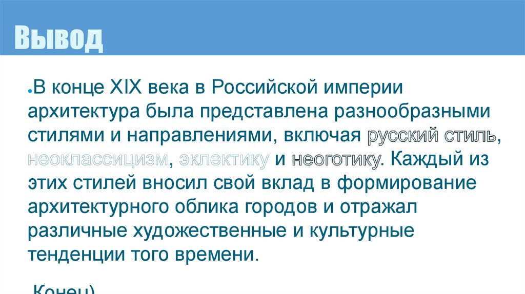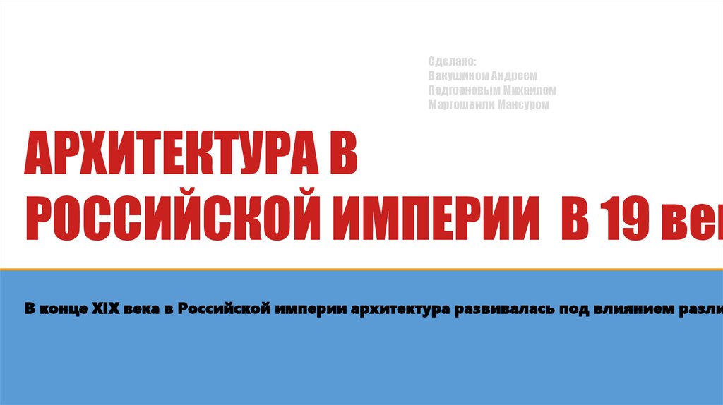В конце XIX века в Российской империи архитектура развивалась под влиянием разли