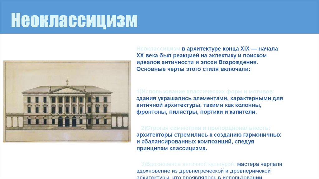 НеоклассицизмНеоклассицизм в архитектуре конца XIX — начала