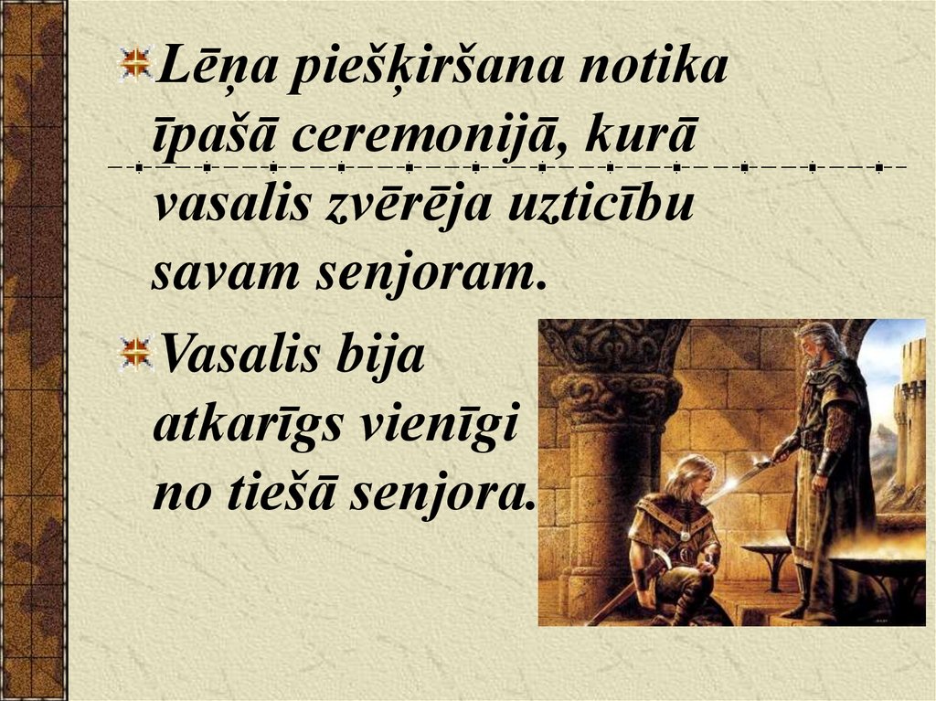 Lēņa piešķiršana notikaīpašā ceremonijā, kurā