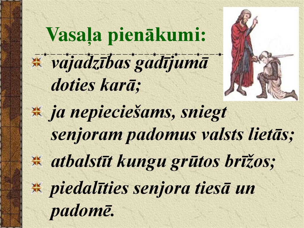 10. Feodāla pienākumi, tiesības un privileģijas: