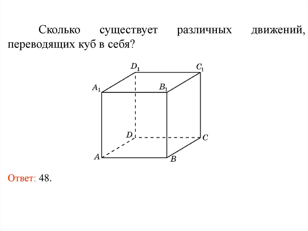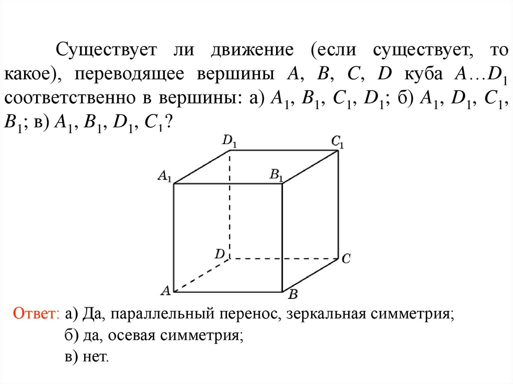 Существует ли движение (если существует, токакое), переводящее вершины A, B, C, D куба A…D1