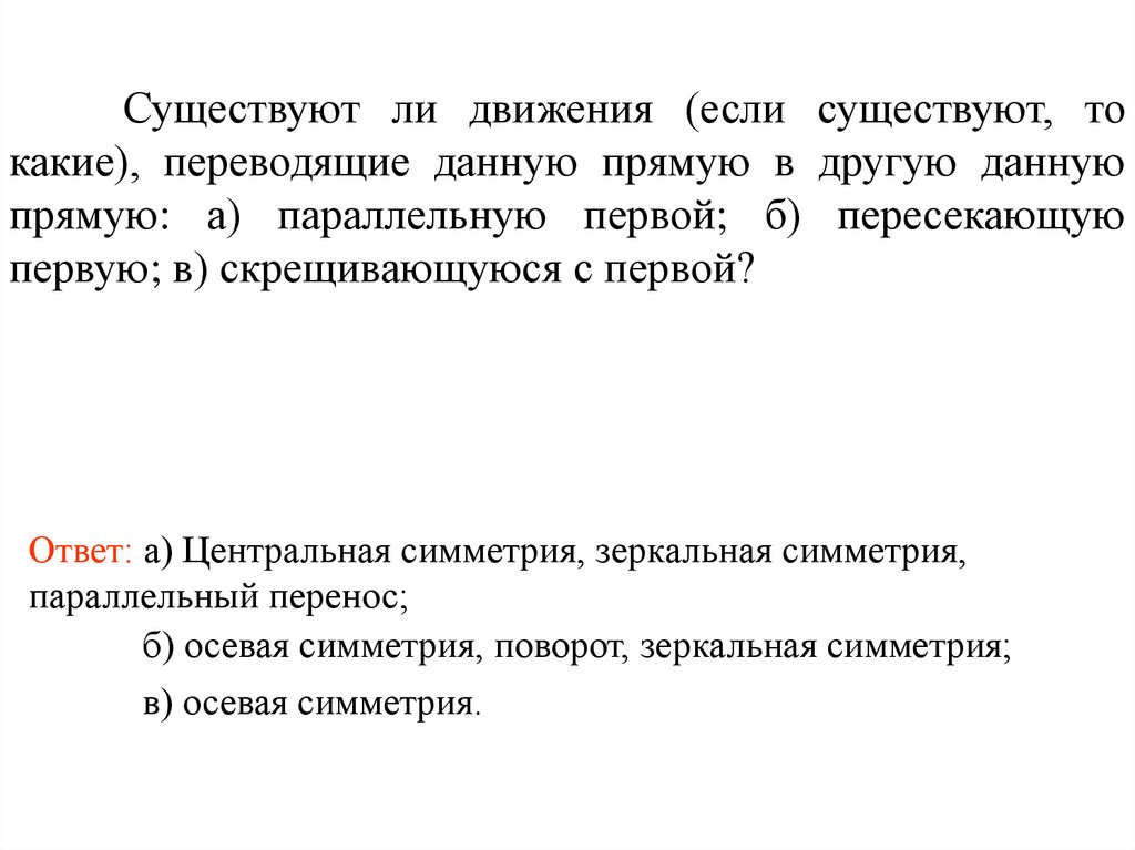 Существуют ли движения (если существуют, токакие), переводящие данную прямую в другую данную