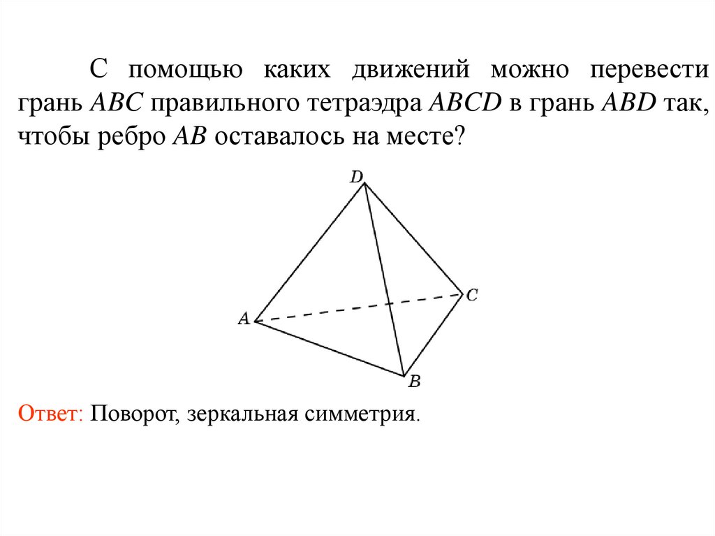 С помощью каких движений можно перевестигрань ABC правильного тетраэдра ABCD в грань ABD так,