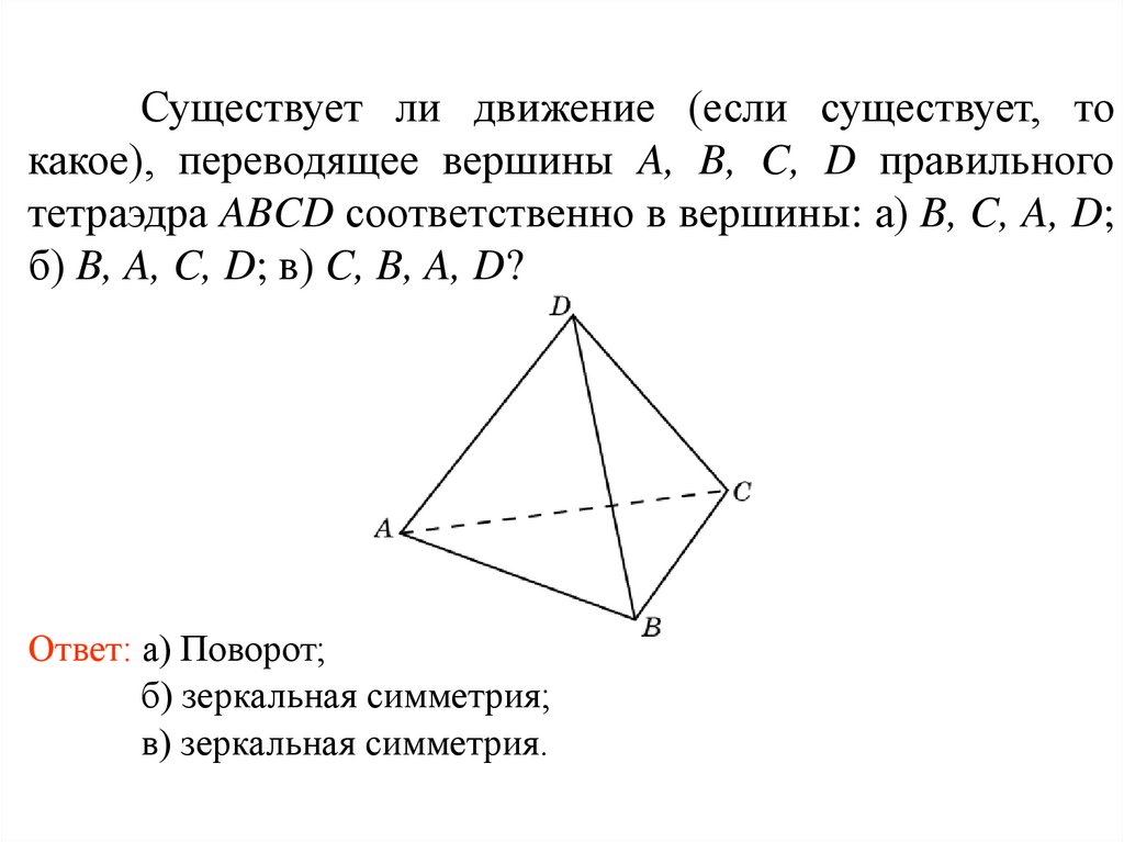 Существует ли движение (если существует, токакое), переводящее вершины A, B, C, D правильного
