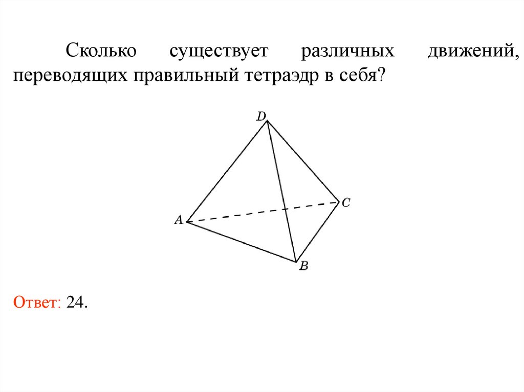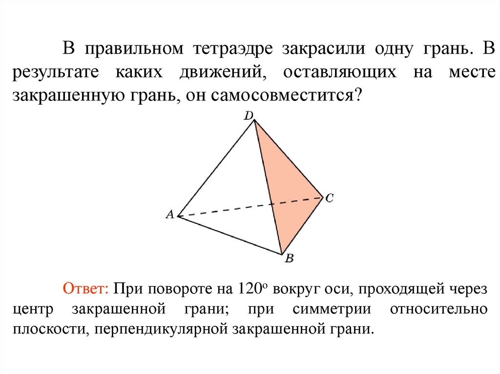 В правильном тетраэдре закрасили одну грань. Врезультате каких движений, оставляющих на месте