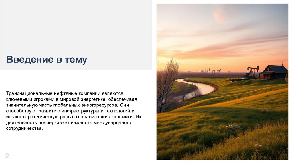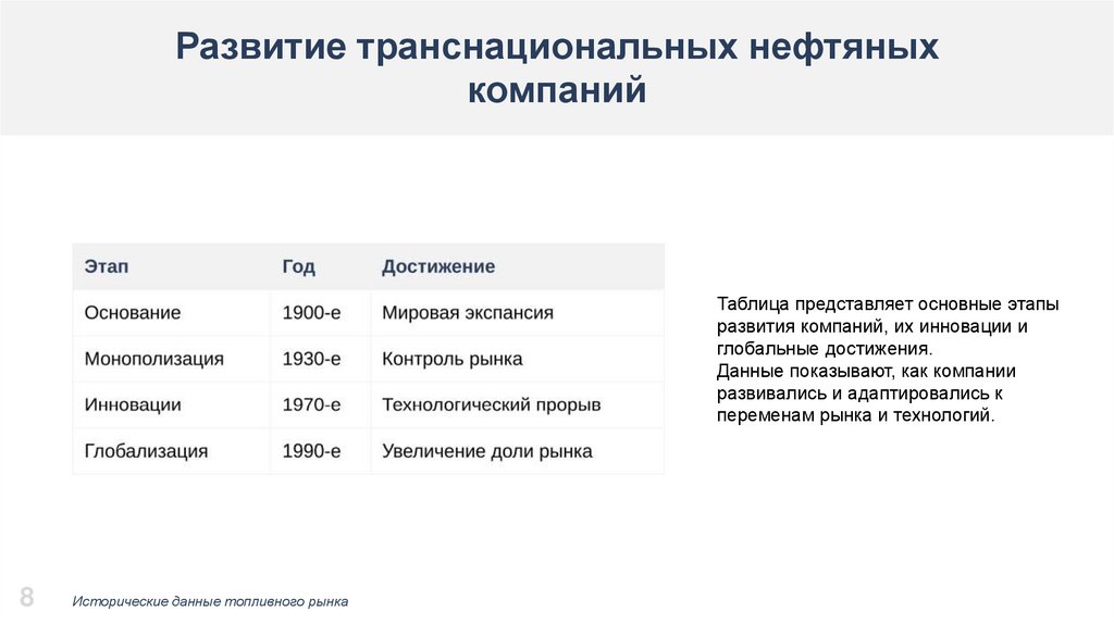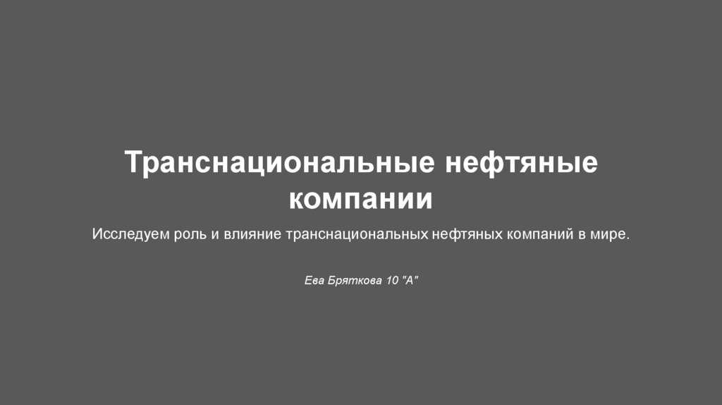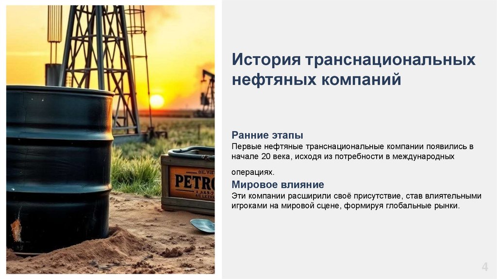 Исследуем роль и влияние транснациональных нефтяных компаний в мире.