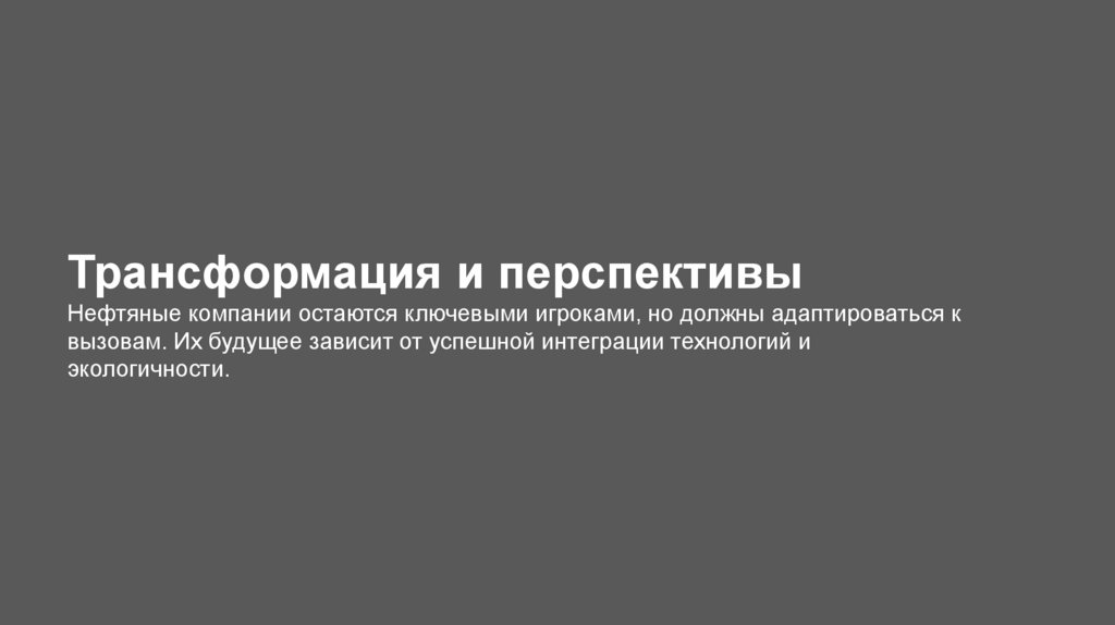Трансформация и перспективыНефтяные компании остаются ключевыми игроками, но должны адаптироваться к