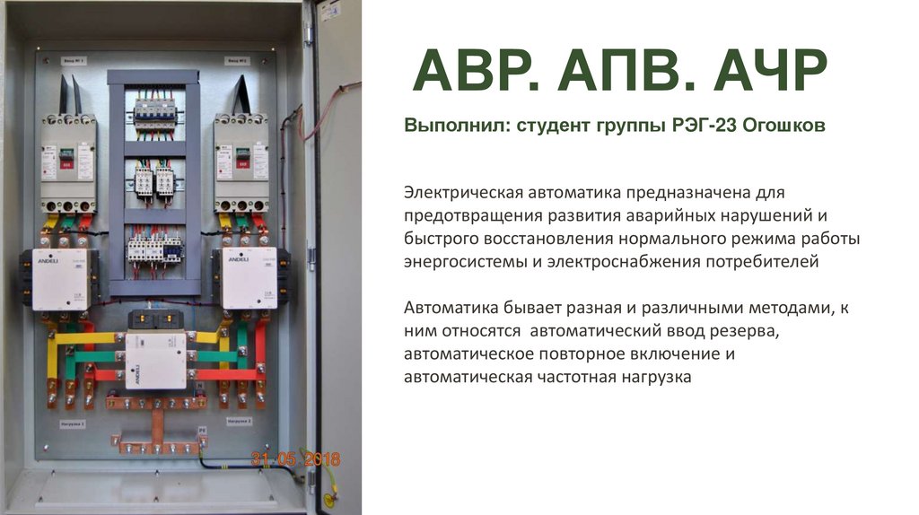 АВР. АПВ. АЧРВыполнил: студент группы РЭГ-23 Огошков