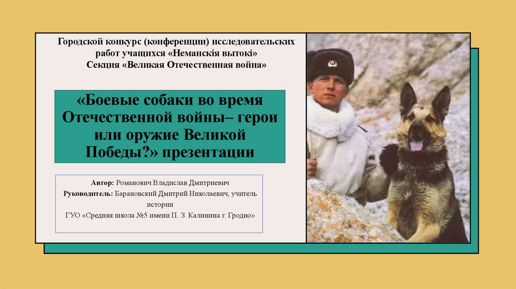 1. «Боевые собаки во время Отечественной войны– герои или оружие Великой Победы?» презентации