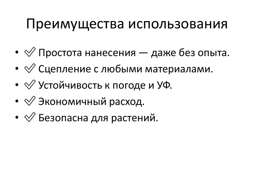 Преимущества использования• ✅ Простота нанесения — даже без опыта.