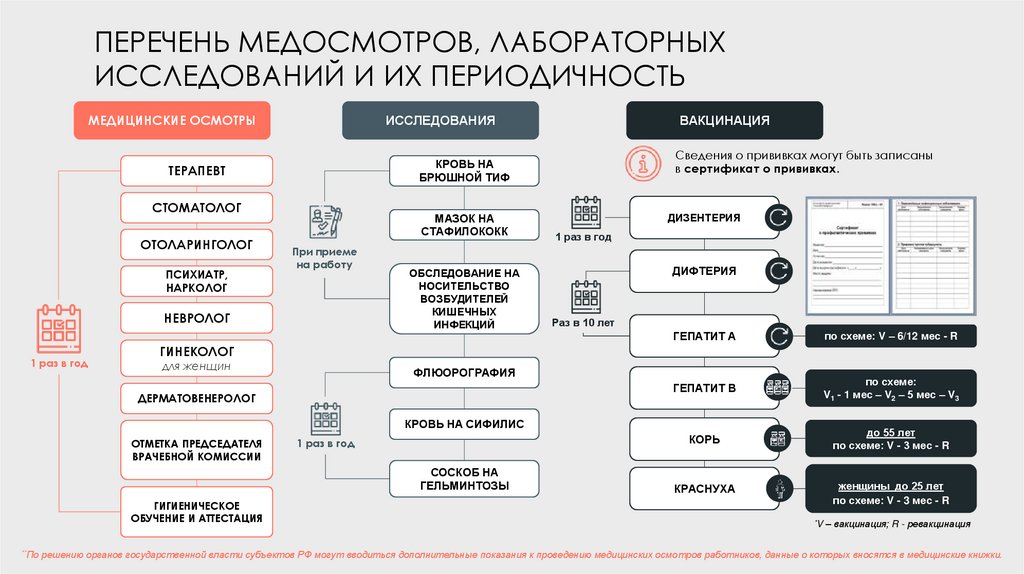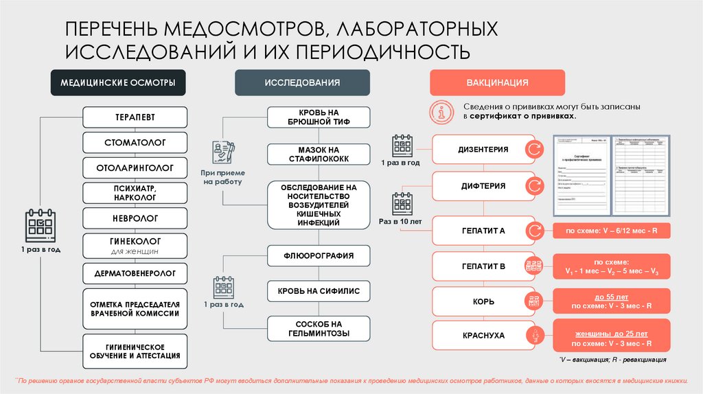 **По решению органов государственной власти субъектов РФ могут вводиться дополнительные показания к проведению медицинских осмотров работников, данные о которых вносятся в медицинские книжки.