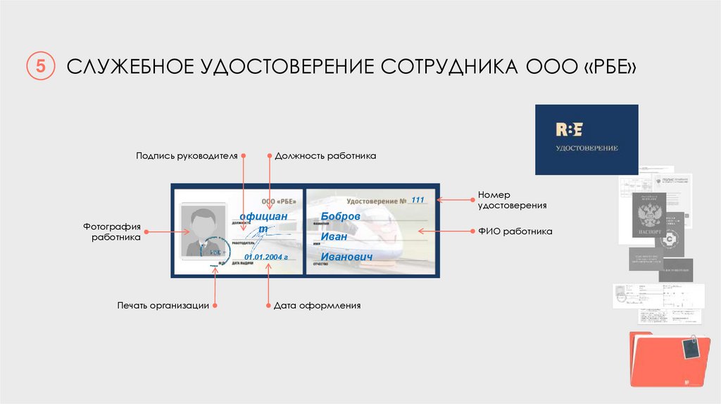 5СЛУЖЕБНОЕ УДОСТОВЕРЕНИЕ СОТРУДНИКА ООО «РБЕ»