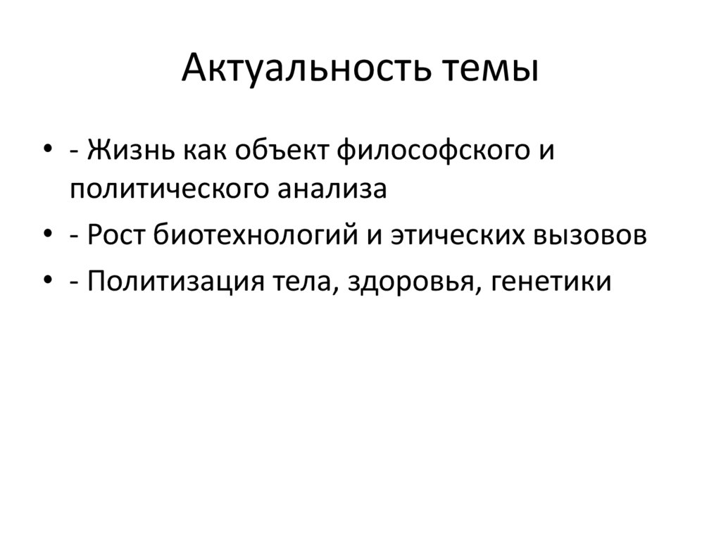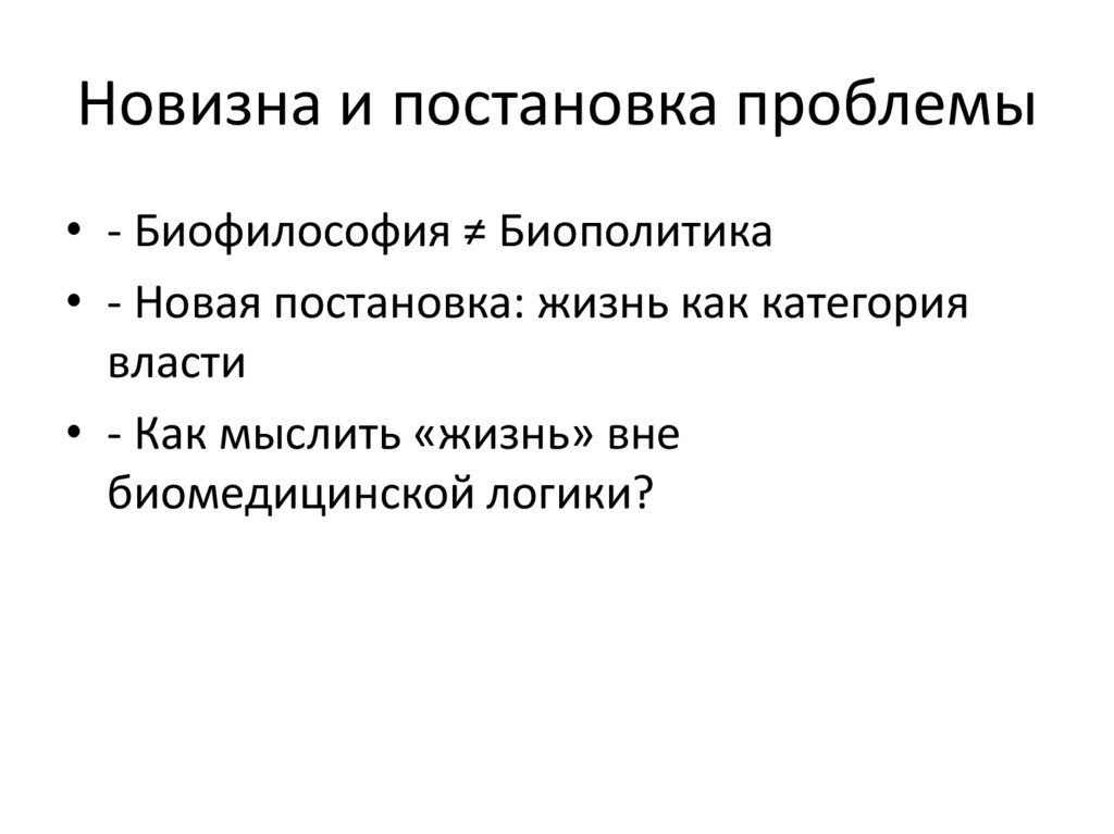Новизна и постановка проблемы• - Биофилософия ≠ Биополитика