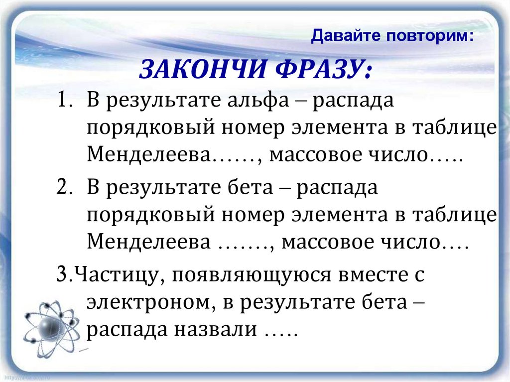 Давайте повторим:ЗАКОНЧИ ФРАЗУ: