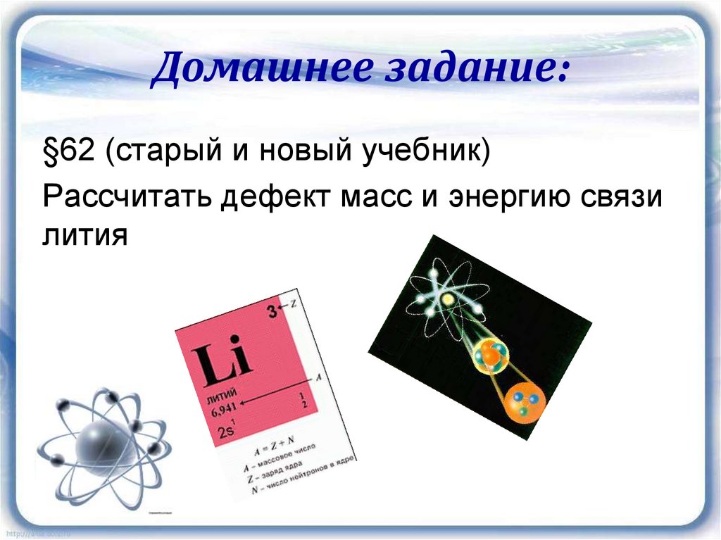 §62 (старый и новый учебник)Рассчитать дефект масс и энергию связи