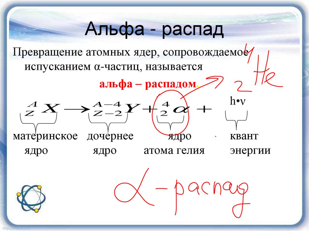 Превращение атомных ядер, сопровождаемоеиспусканием α-частиц, называется