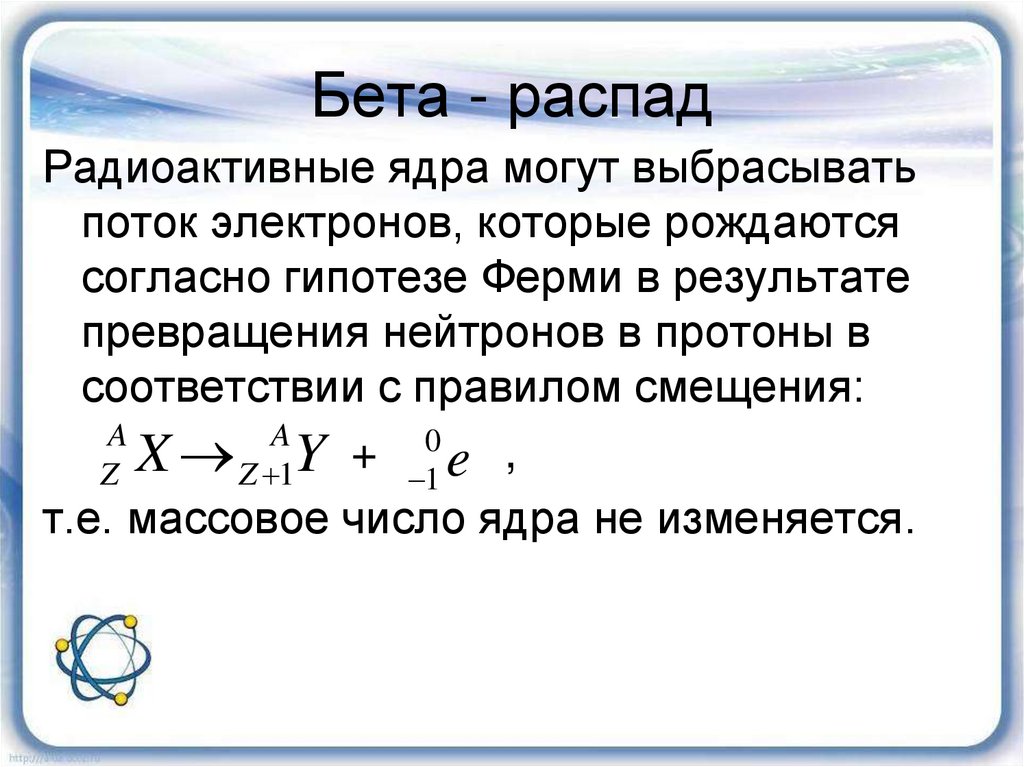 Радиоактивные ядра могут выбрасыватьпоток электронов, которые рождаются