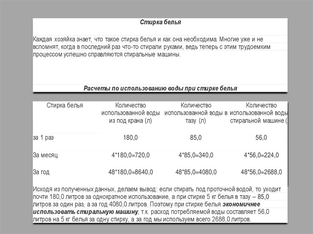 литров на 5 кг белья за одну стирку, а за год мы используем всего 2688,0 литров.