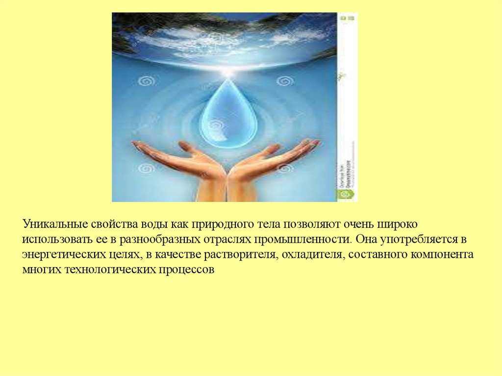 составляющих основу жизни. Огромное значение вода имеет в промышленном и