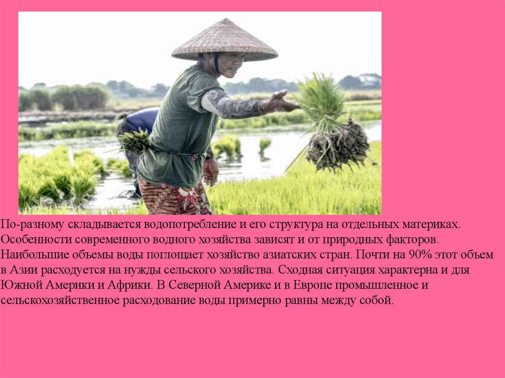 в Азии расходуется на нужды сельского хозяйства. Сходная ситуация характерна и для
