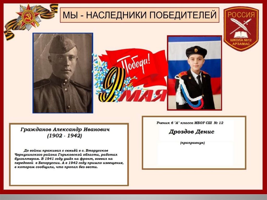 Арзамасцы вписали яркую страницу влетопись героической борьбы. Защищая