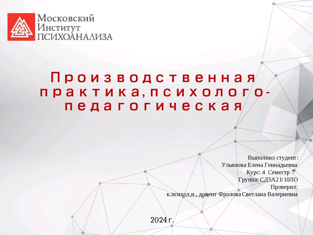 Производственная практика, психологопедагогическая