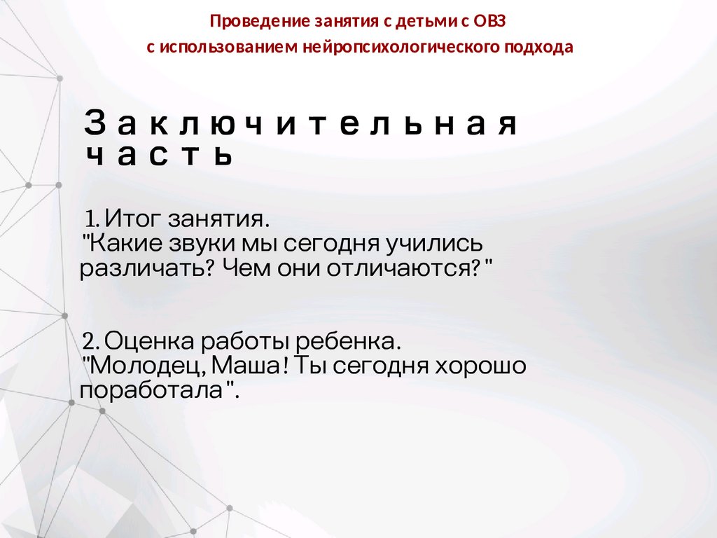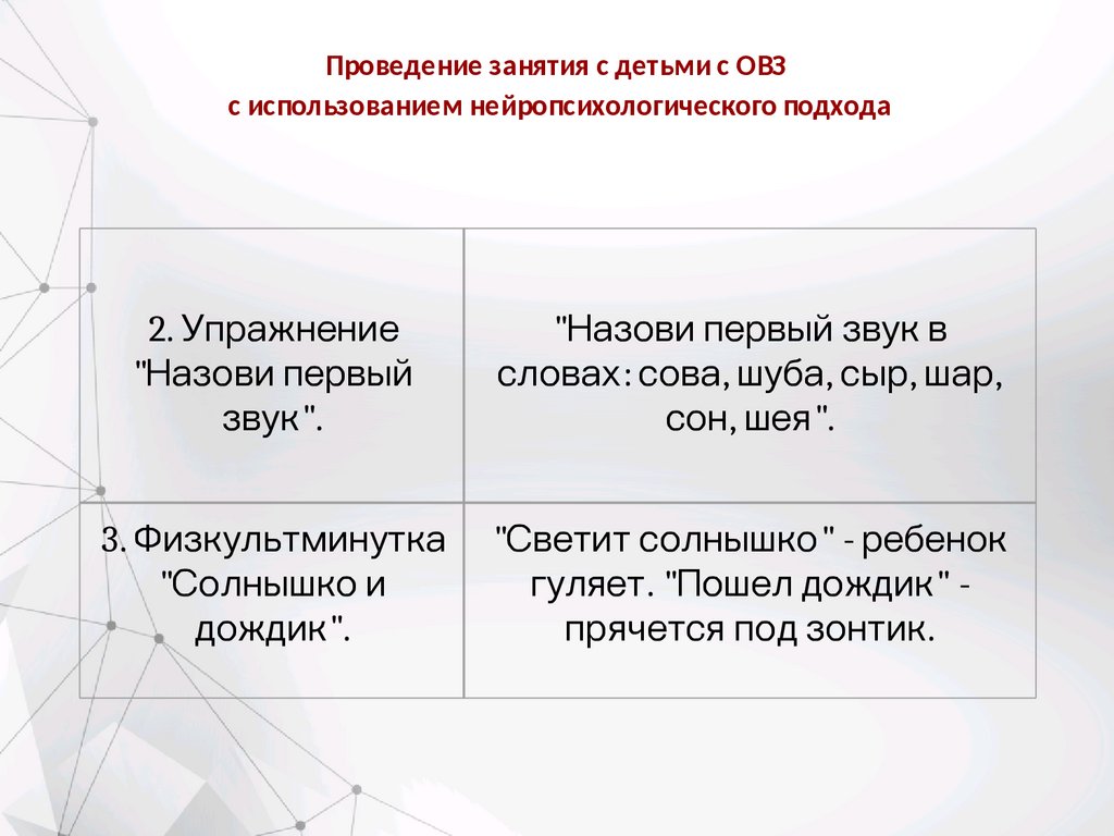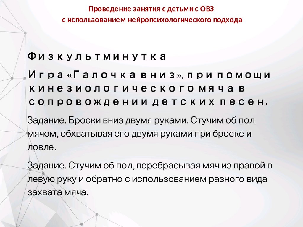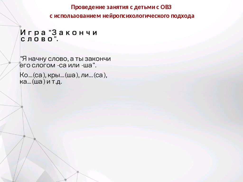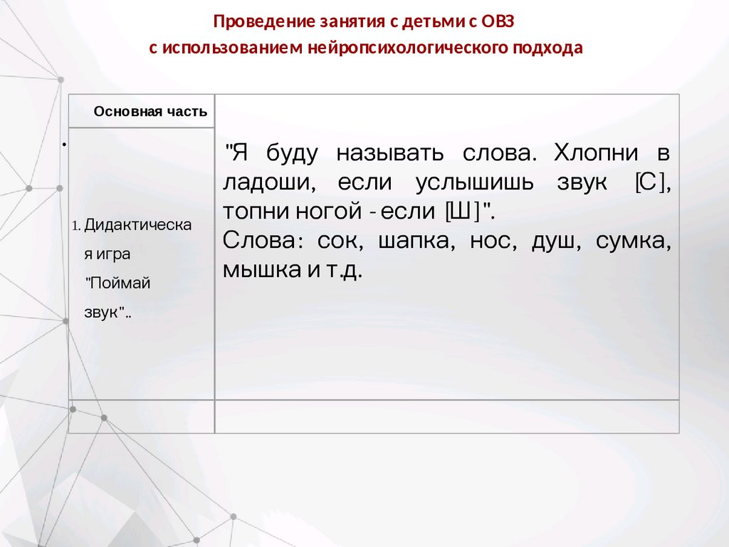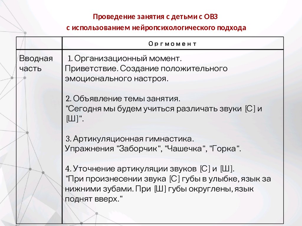 Проведение занятия с детьми с ОВЗс использованием нейропсихологического подхода