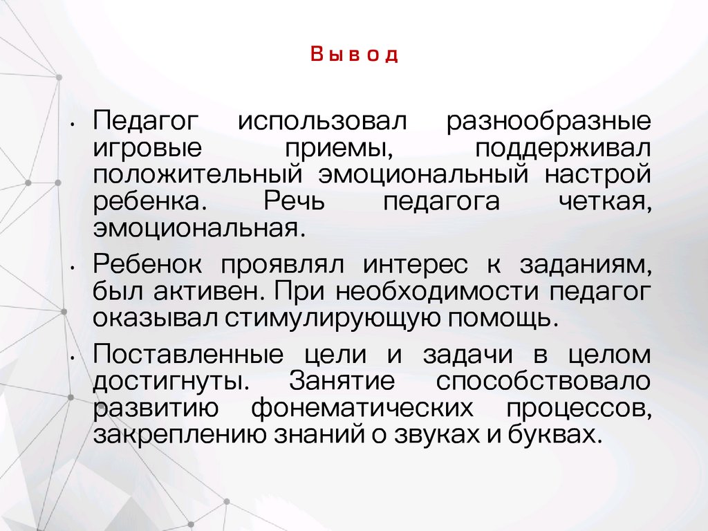 •Продемонстрированы развивающие упражнения