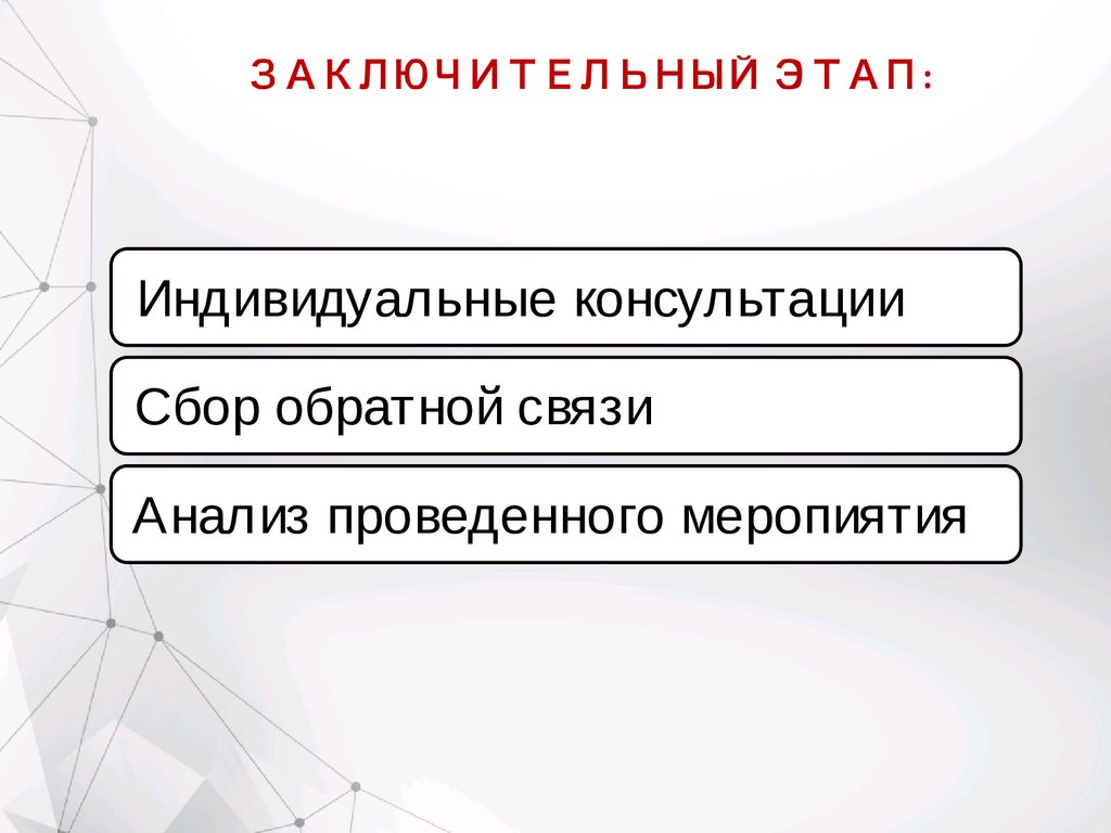 ЗАКЛЮЧИТЕЛЬНЫЙ ЭТАП:Индивидуальные консультации