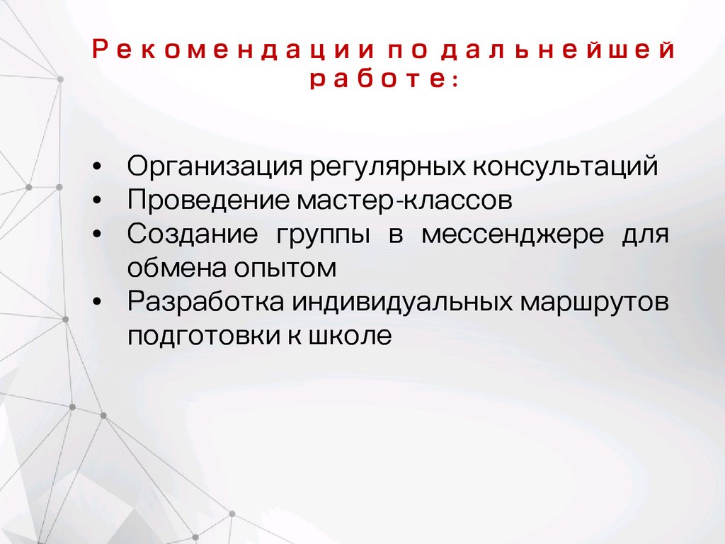 • Организация регулярных консультаций
