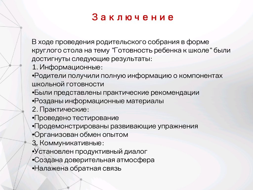 ЗаключениеВ ходе проведения родительского собрания в форме