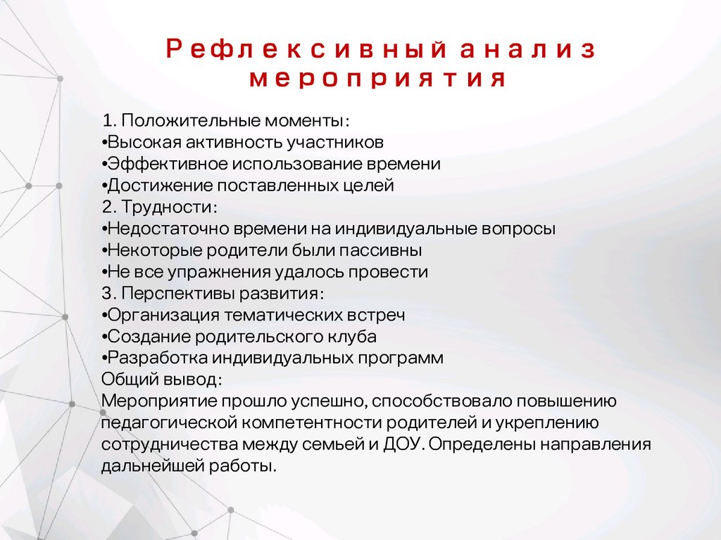 Рефлексивный анализмероприятия