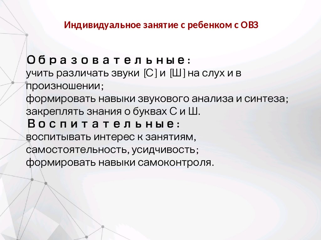 Индивидуальное занятие с ребенком с ОВЗОбразовательные: