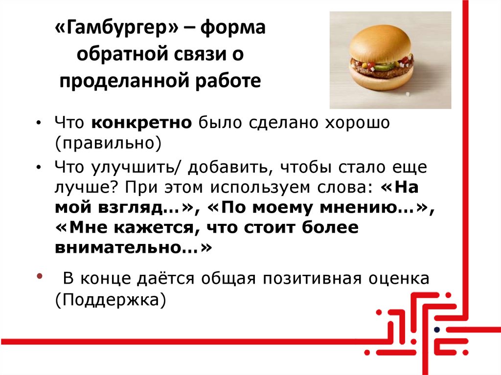 102. «Гамбургер» – форма обратной связи о проделанной работе