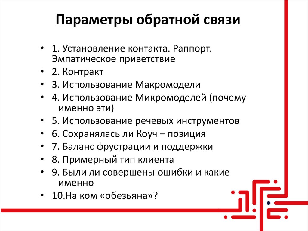 103. Параметры обратной связи