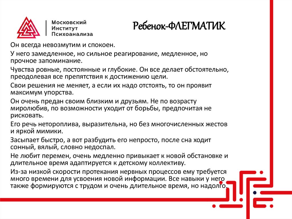 уравновешенный, инертный);