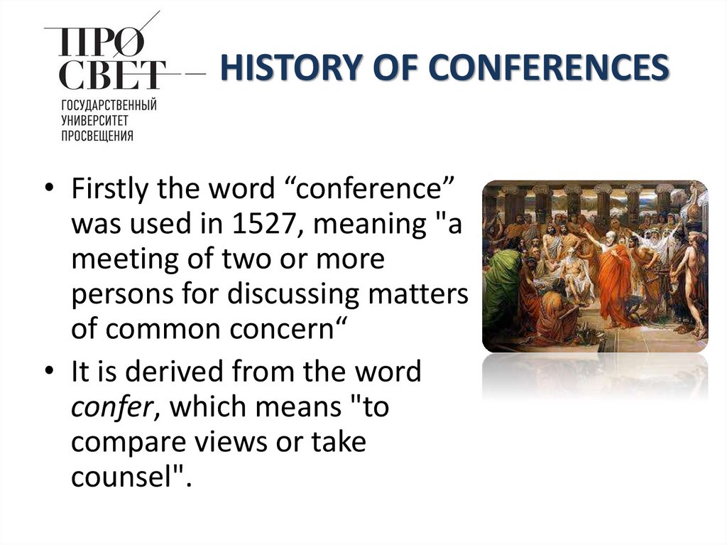 • Firstly the word “conference”was used in 1527, meaning "a