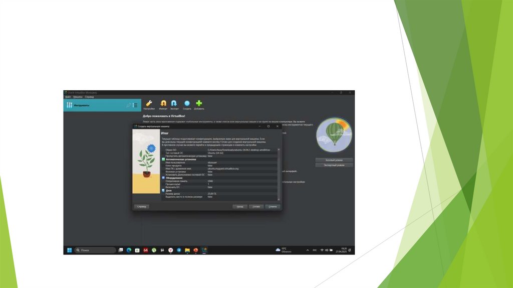 Третье действие: открываем virtual box и создаём виртуальную машину