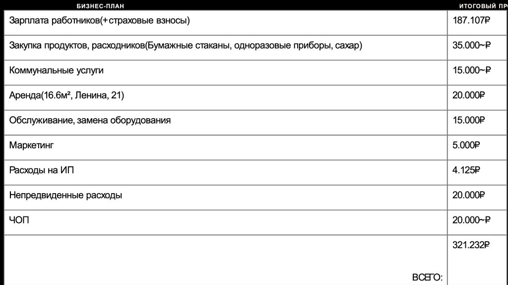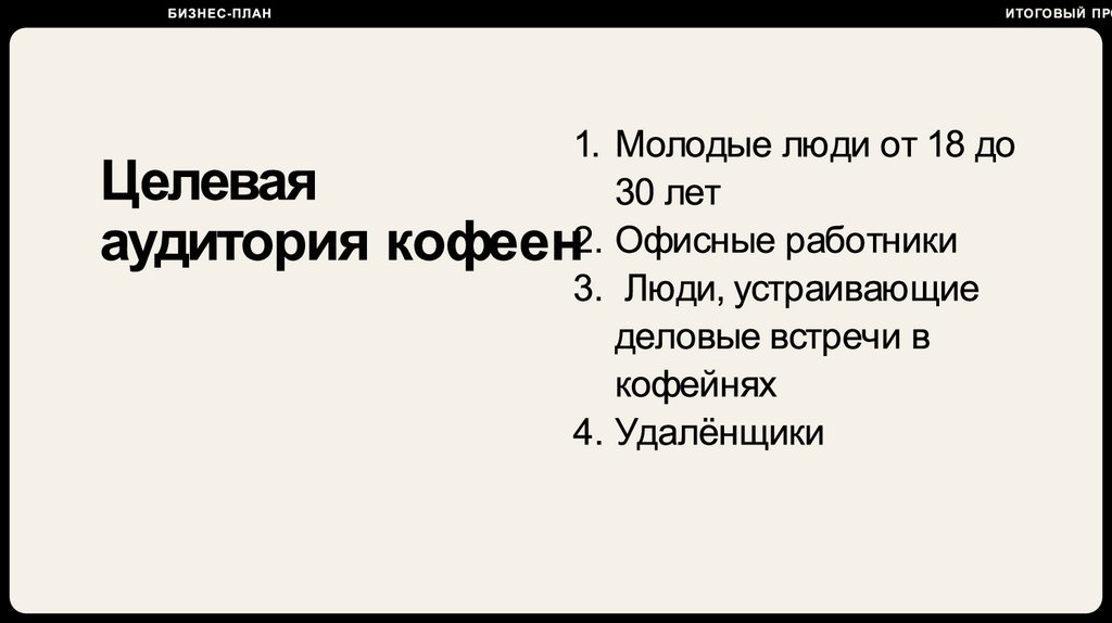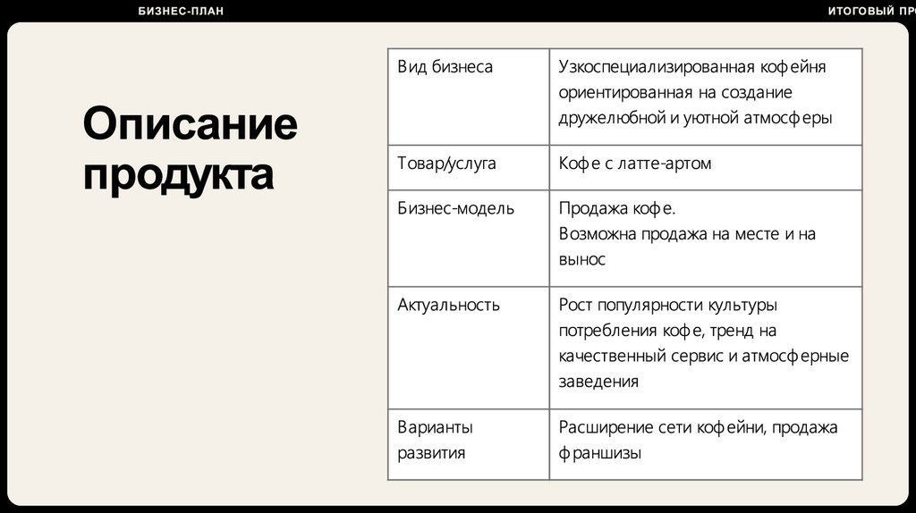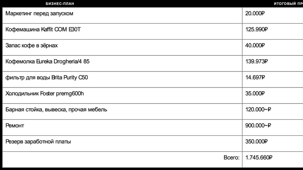 Бизнес-план открытия кофейни. Индивидуальный проект