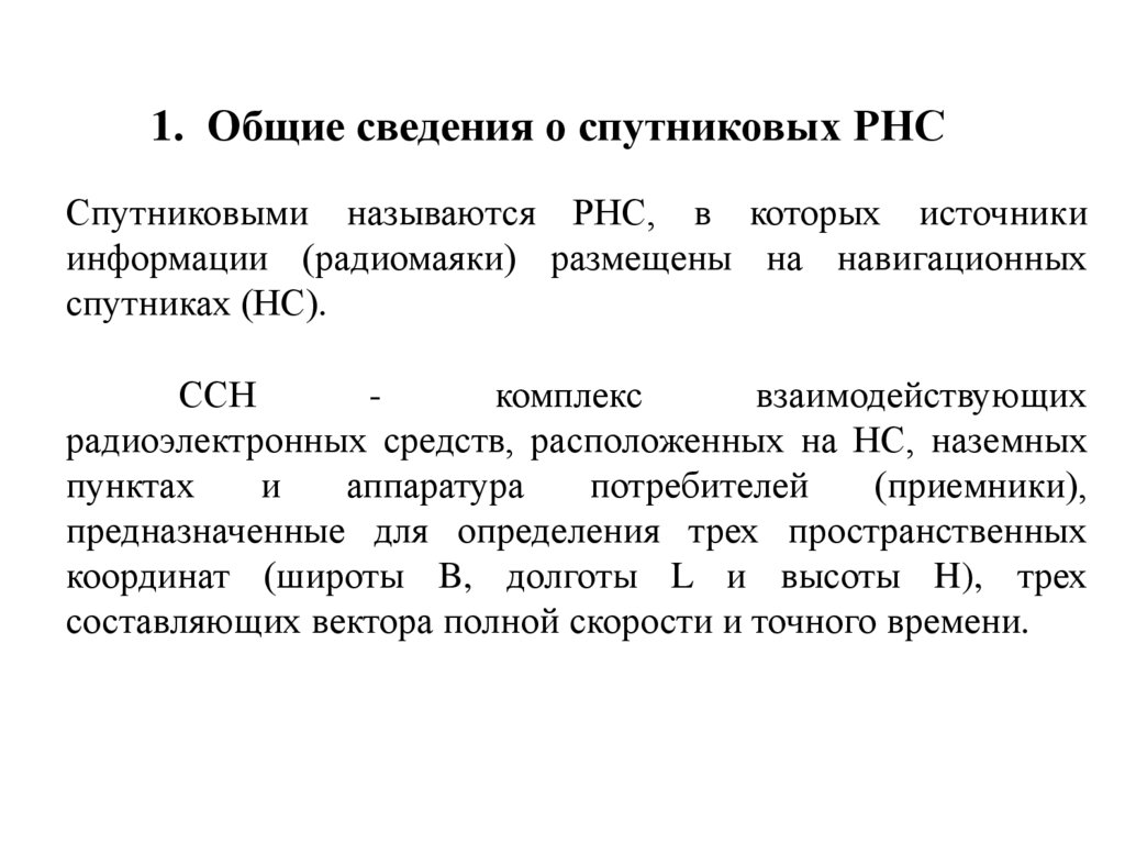 1. Общие сведения о спутниковых РНССпутниковыми называются РНС, в которых источники