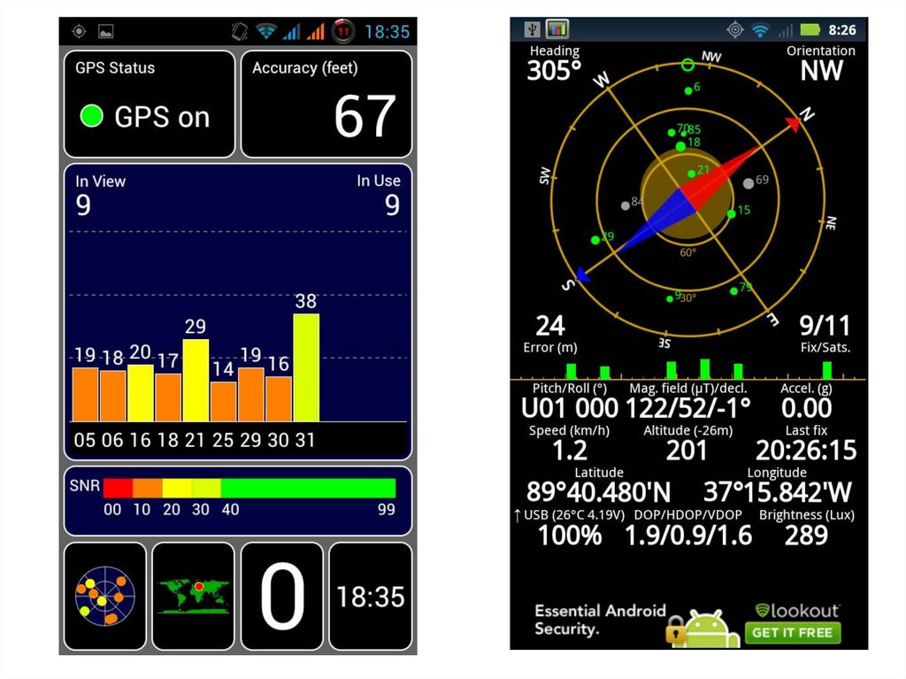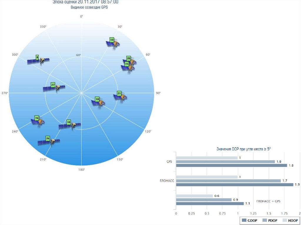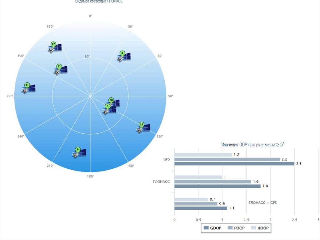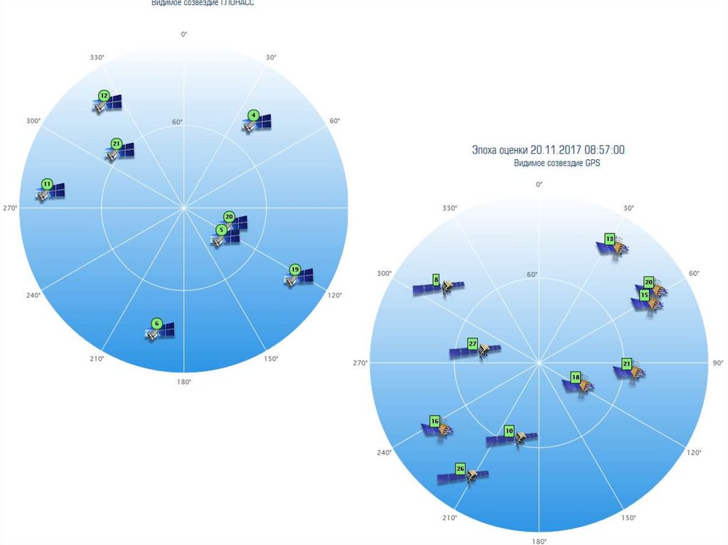 зоне видимости, количество спутников, по которым могли