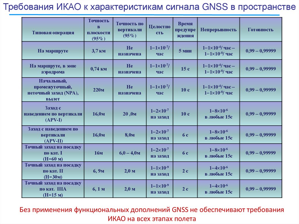 Без применения функциональных дополнений GNSS не обеспечивают требования