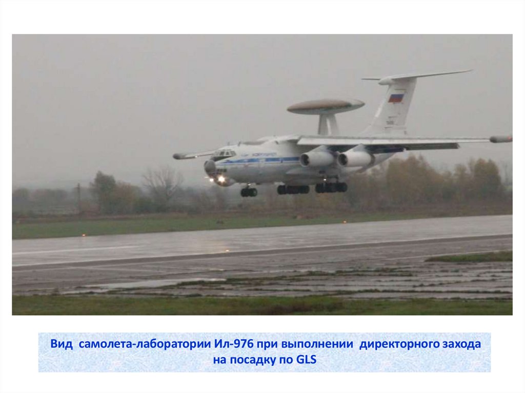 Вид самолета-лаборатории Ил-976 при выполнении директорного заходана посадку по GLS