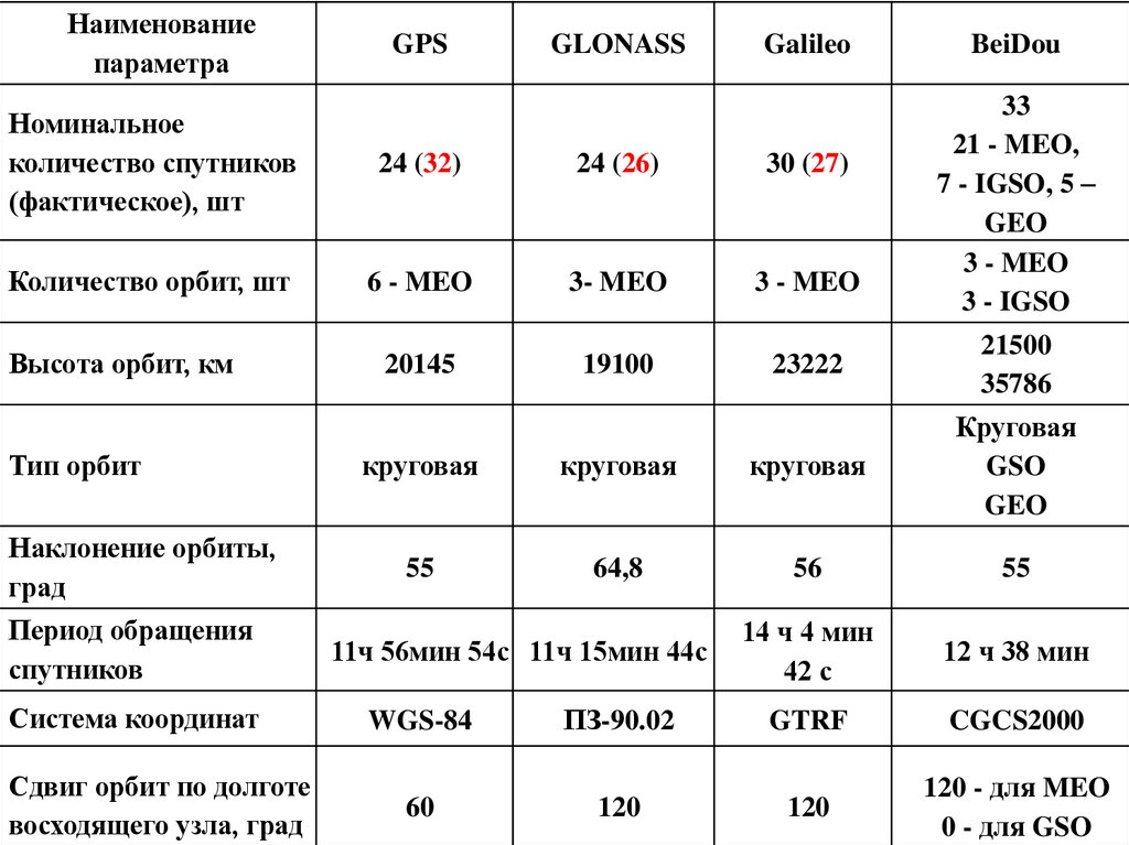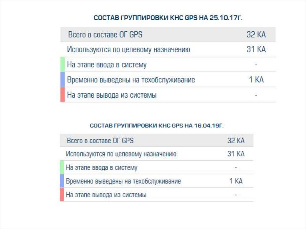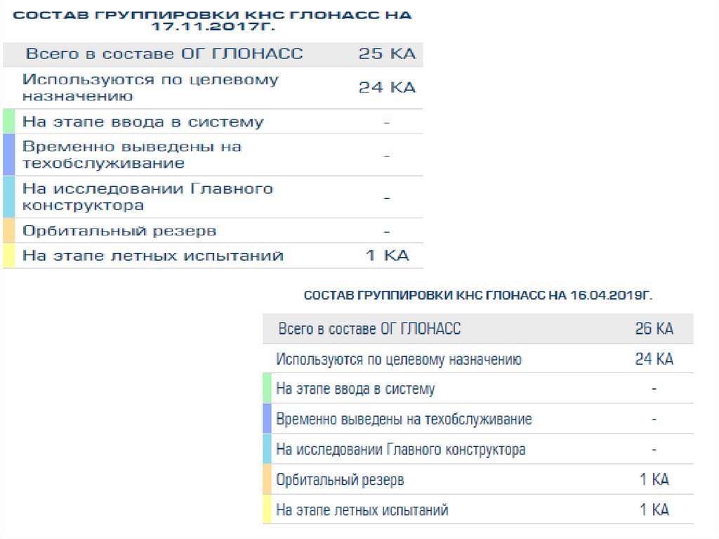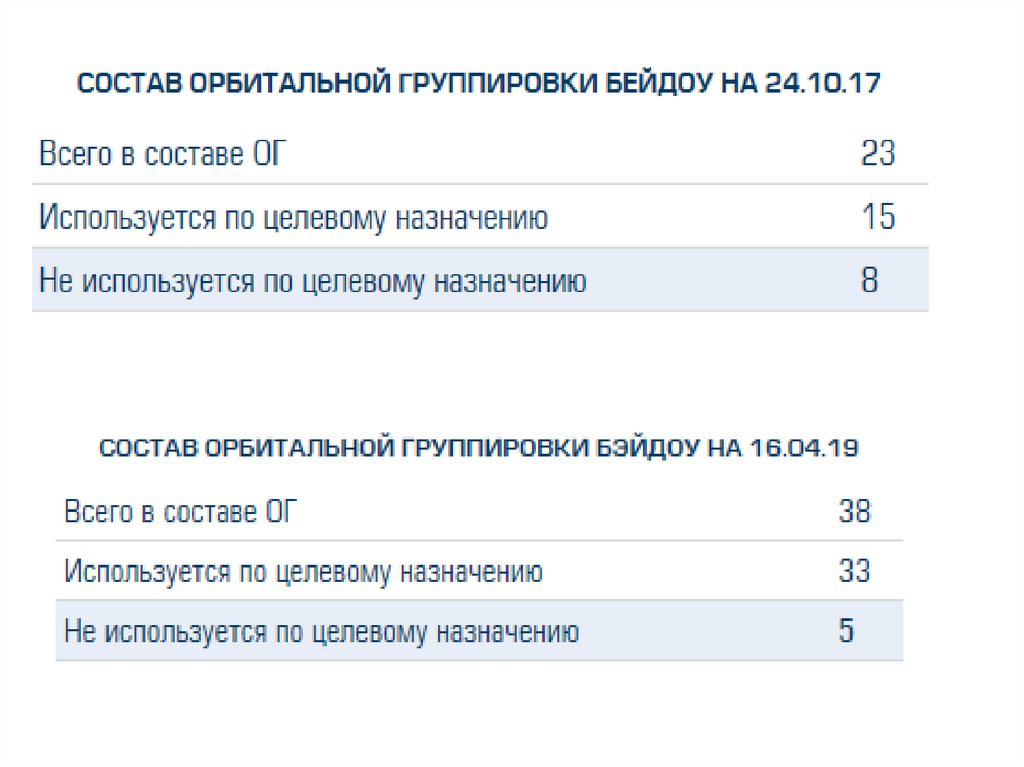 и состава орбитальной группировки, использовании других